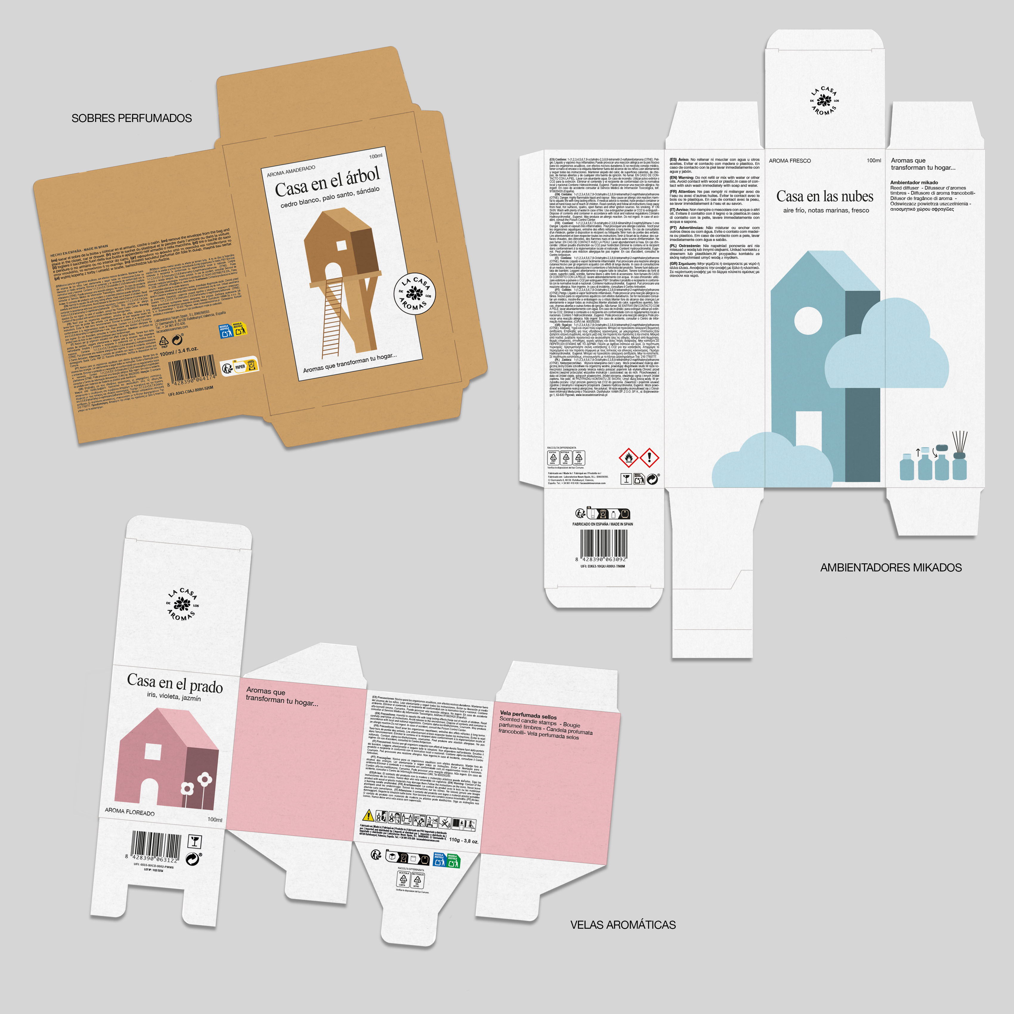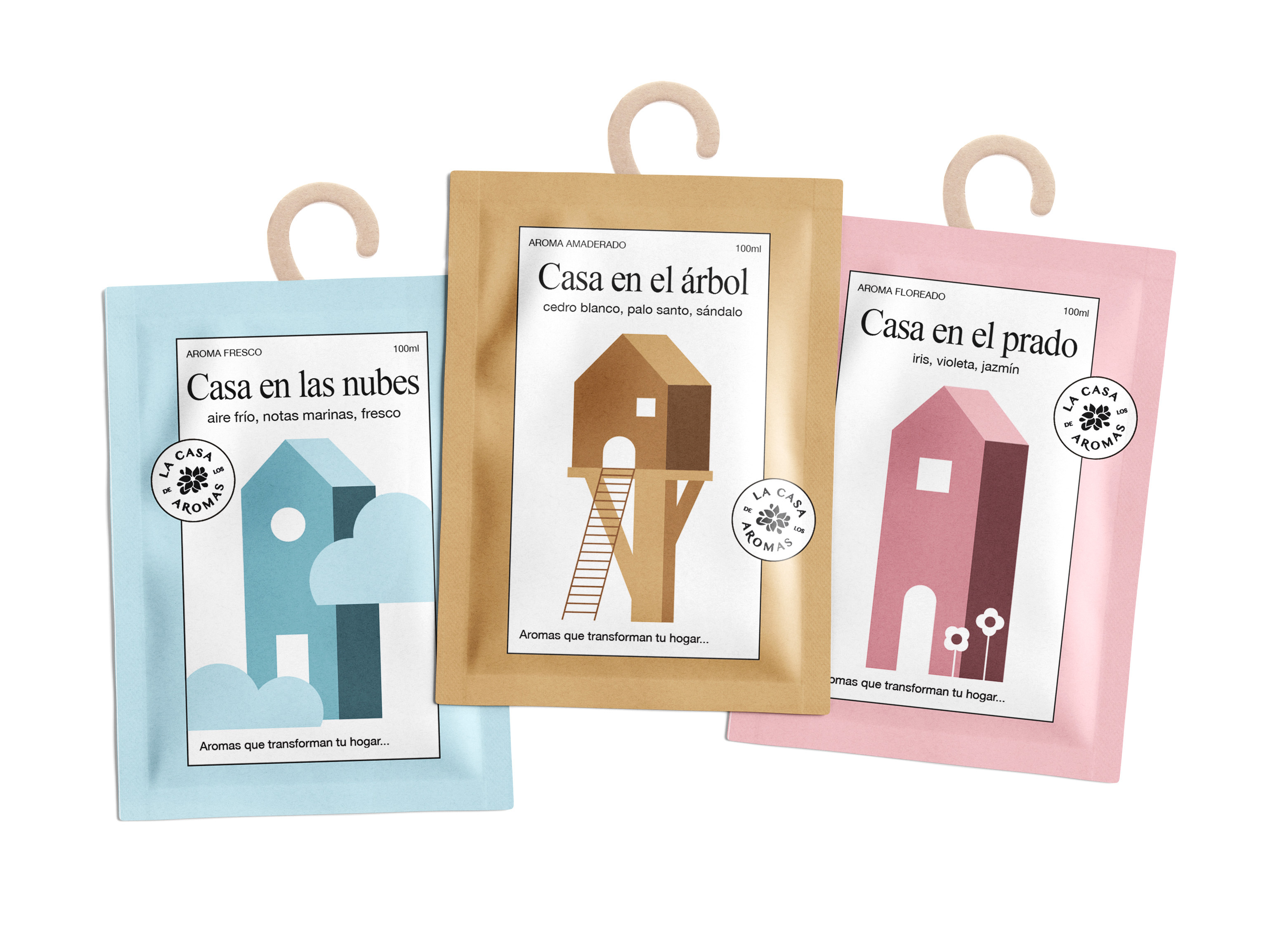 The design was applied across three formats: candle packaging, reed diffusers, and scented sachets.